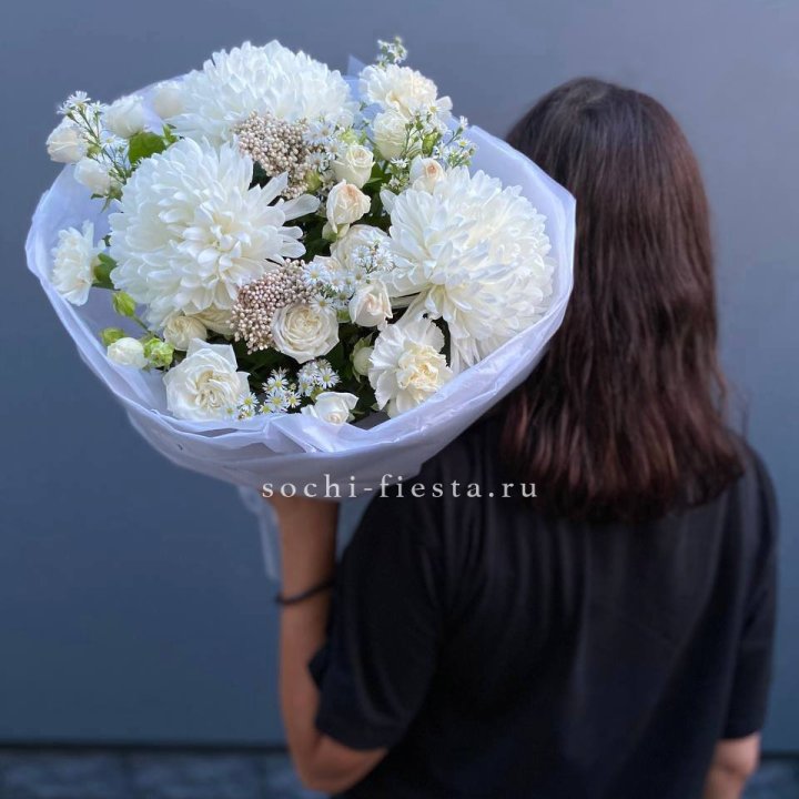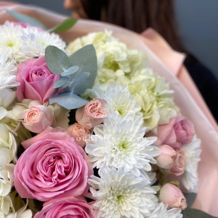 Букет хризантем и роз White snow