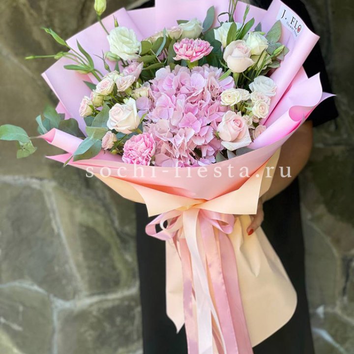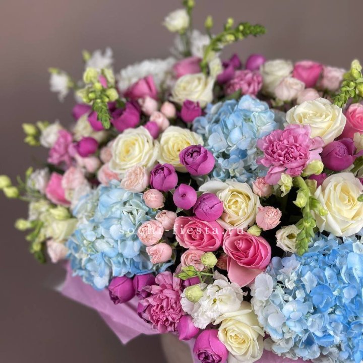 Букет гортензий и роз
