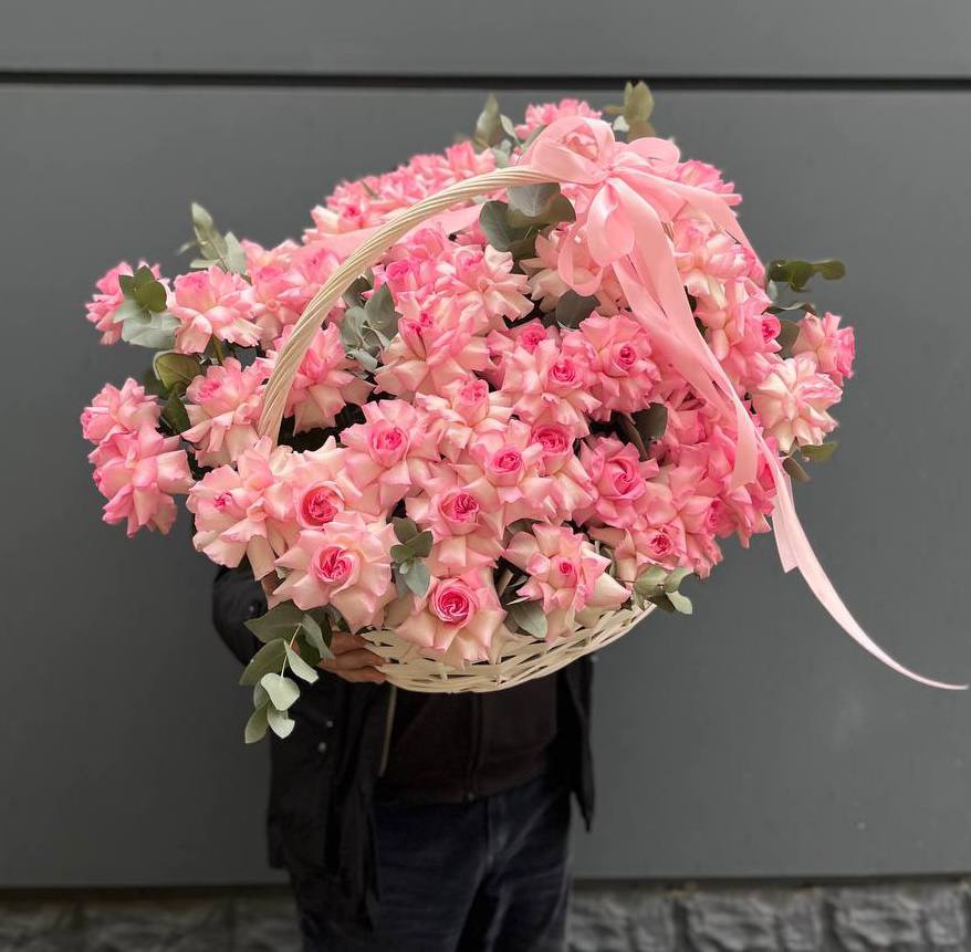 Цветочная корзина из пионов и пионовидных роз "Perfezione"