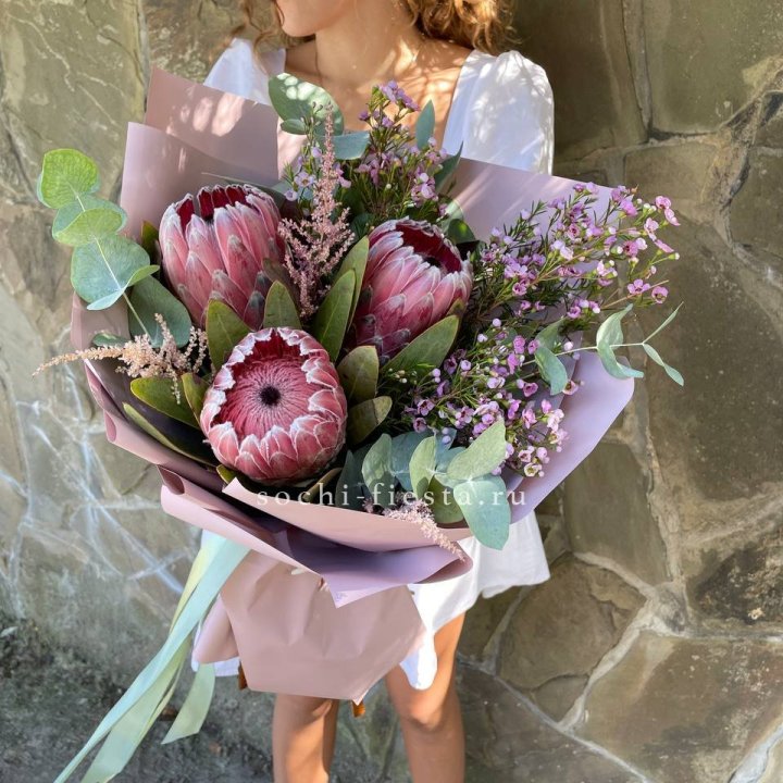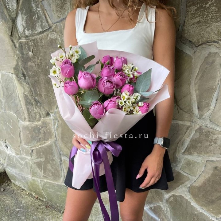 Букеты из эустом, альстромерий, диантусов, хризантем в СочиСреднее время сборки: 35-45 минут