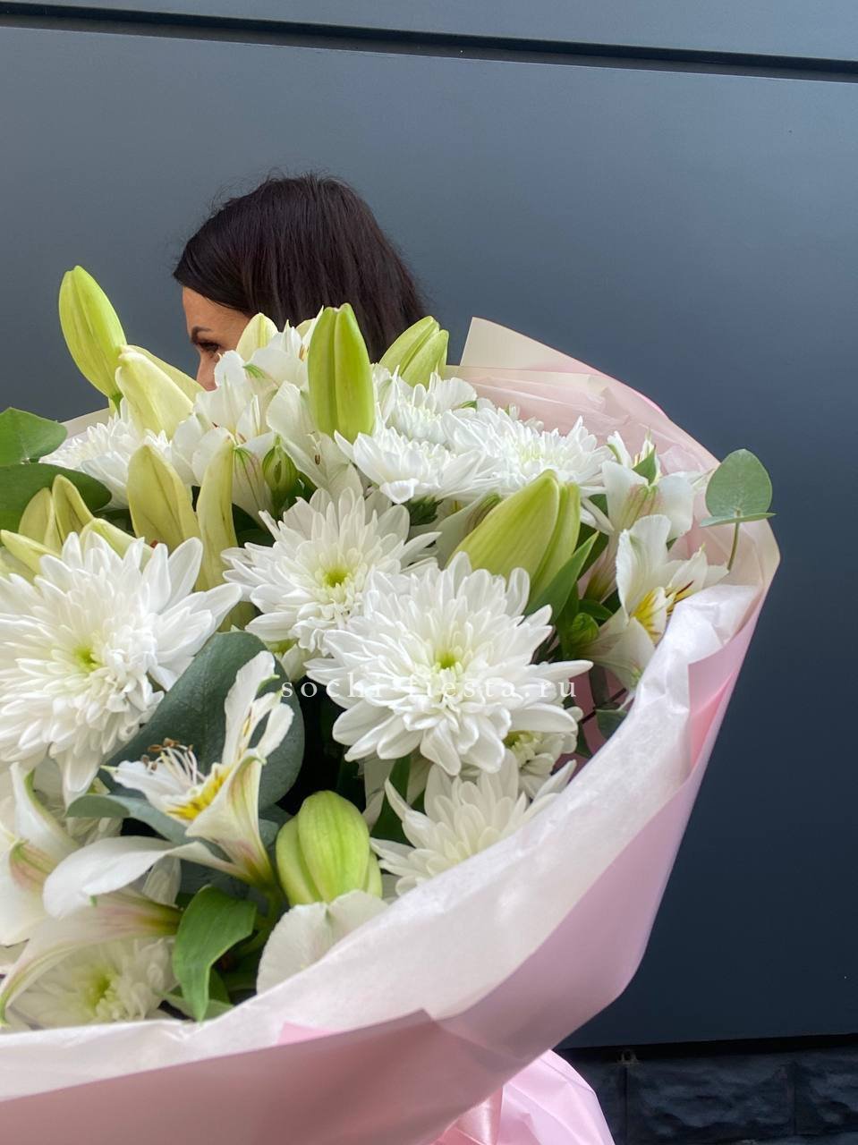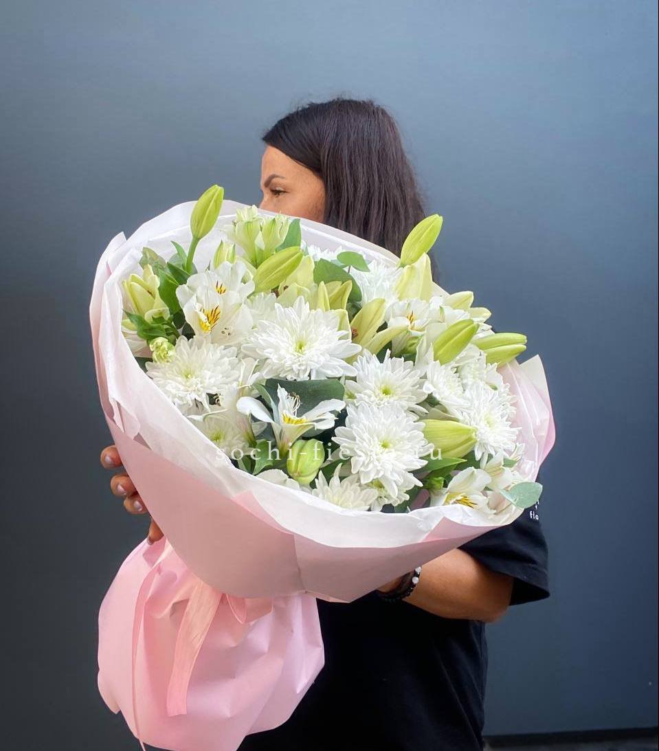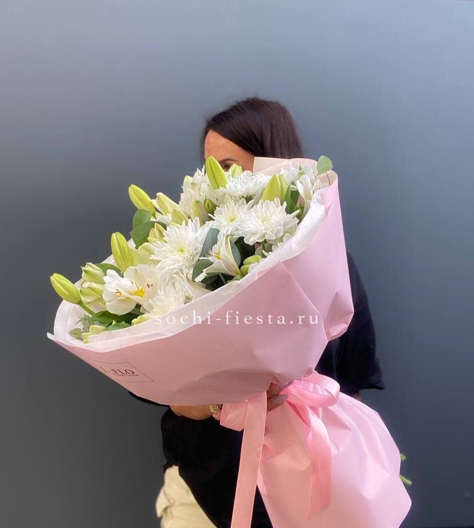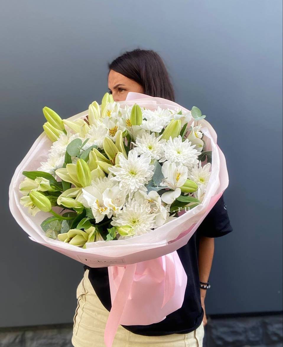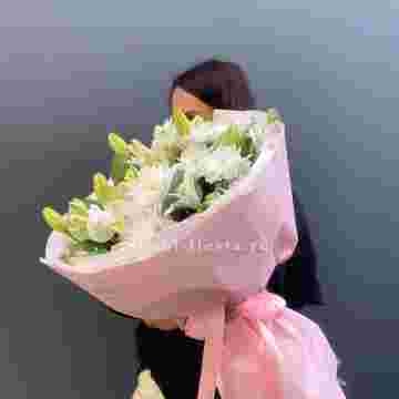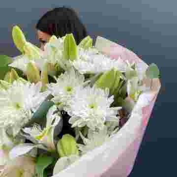 Состав: хризантемы, лилия, альстромерия( возможна замена от сезона), упаковка.