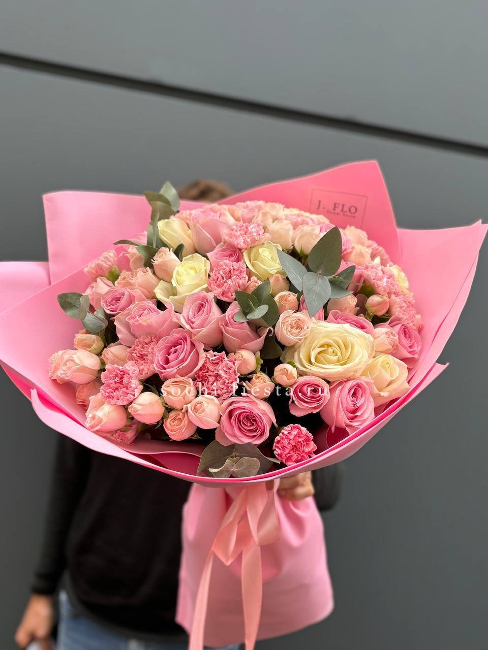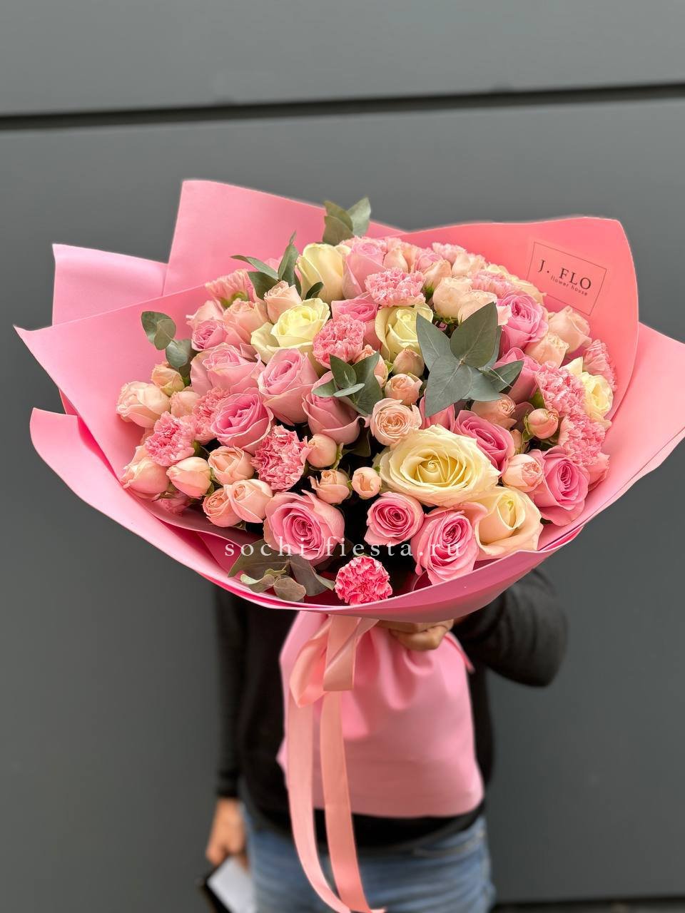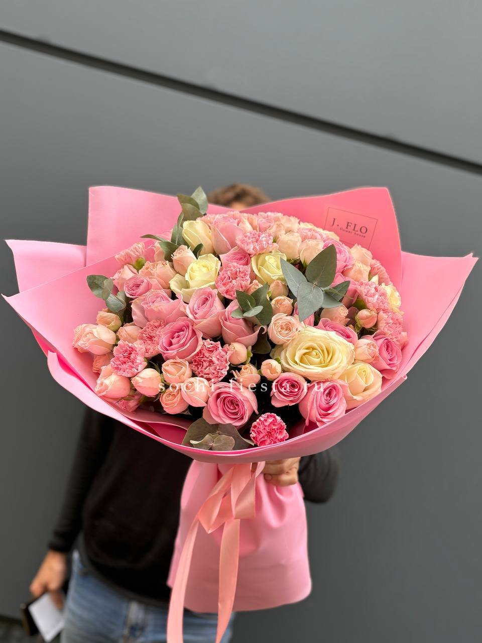 Шикарный букет, легкое оформление, доставка быстрая) Спасибо огромное) Я заказывала с другого города, осуществила заказ в считаные секунды) Спасибо огромное вам) Буду заказывать только у вас и не один раз)
