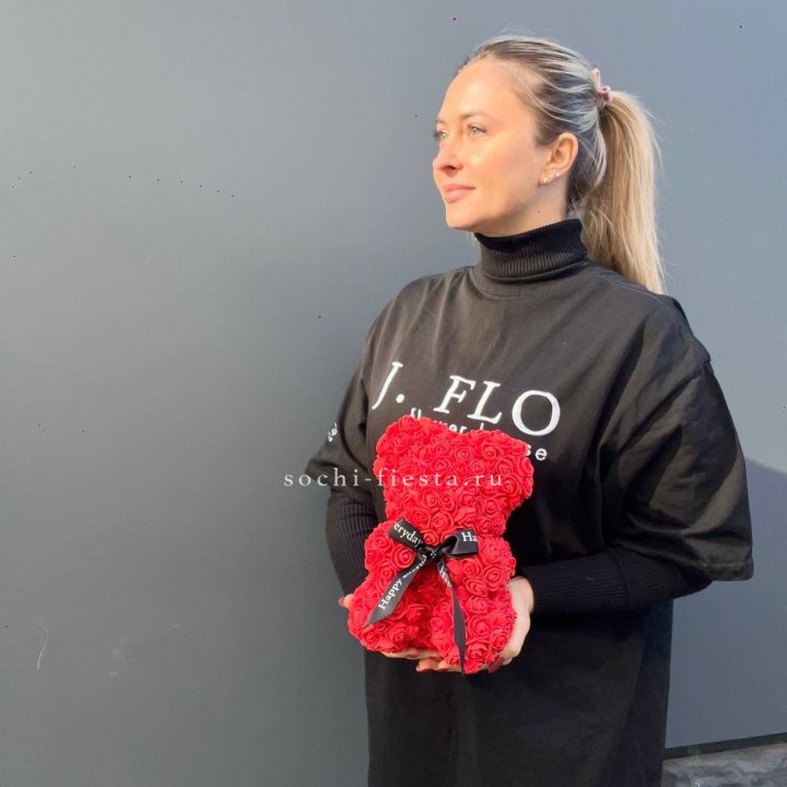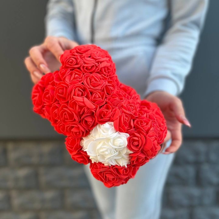 Медведь из роз красный