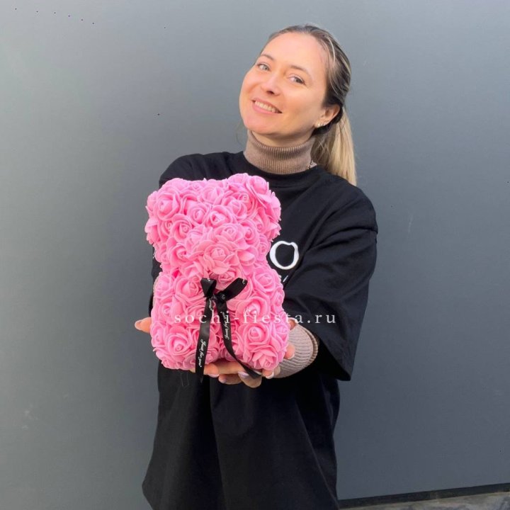 Игрушка медведь из розовых роз