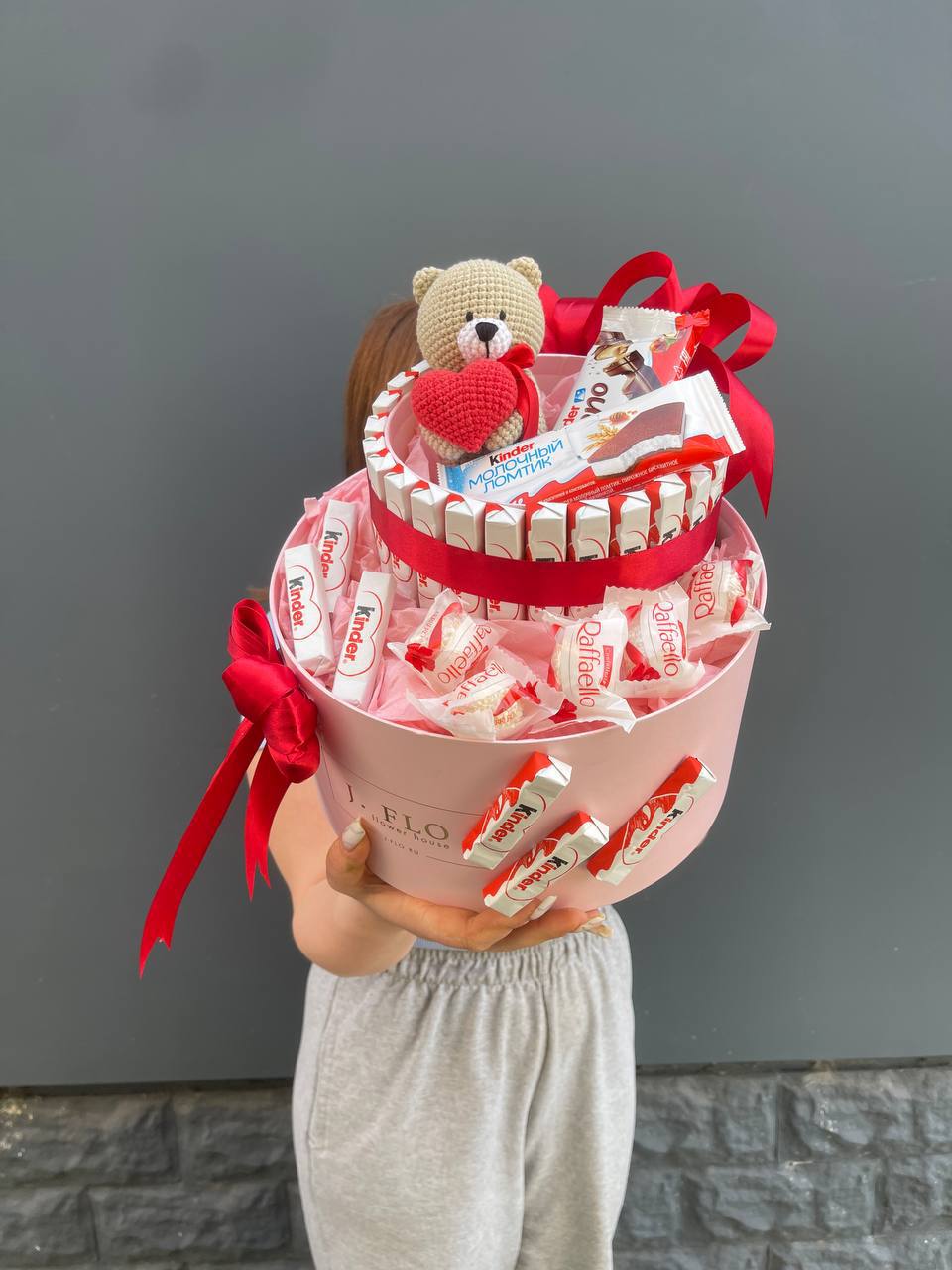Можем внести Ваш текст в объёме, примерно, 2-4 предложения. Привязывается к букету