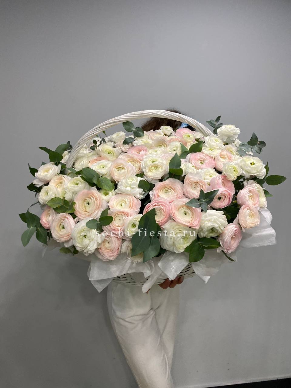 В низкий сезон (с сентября - по апрель) пионы, находящиеся в составе данной композиции, могут быть заменены на пионовидную розу по согласованию с заказчиком