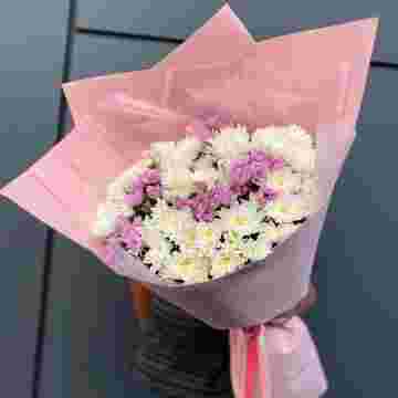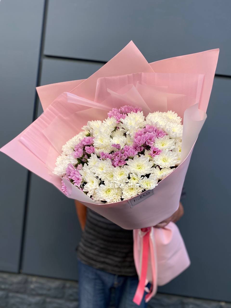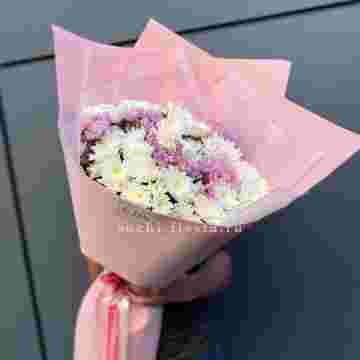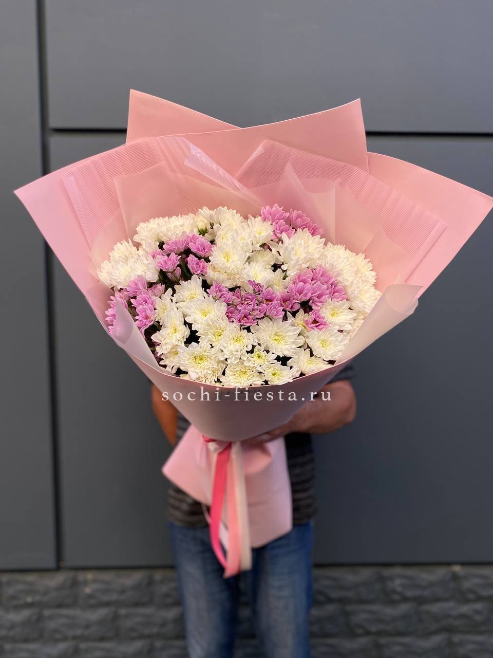 Состав: хризантема кустовая - 15шт., фоамиран, лента