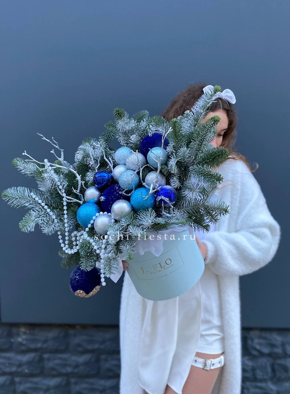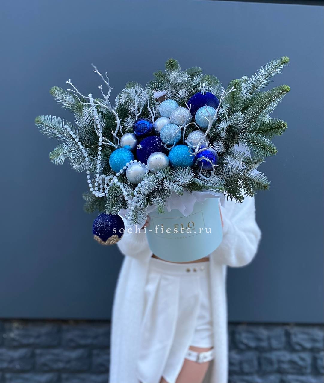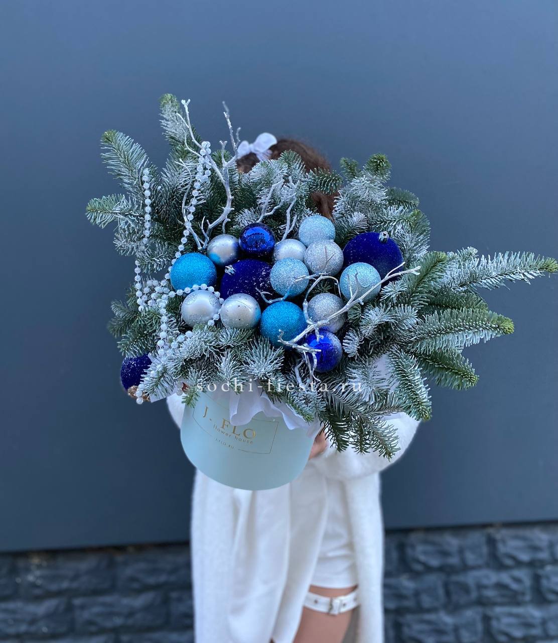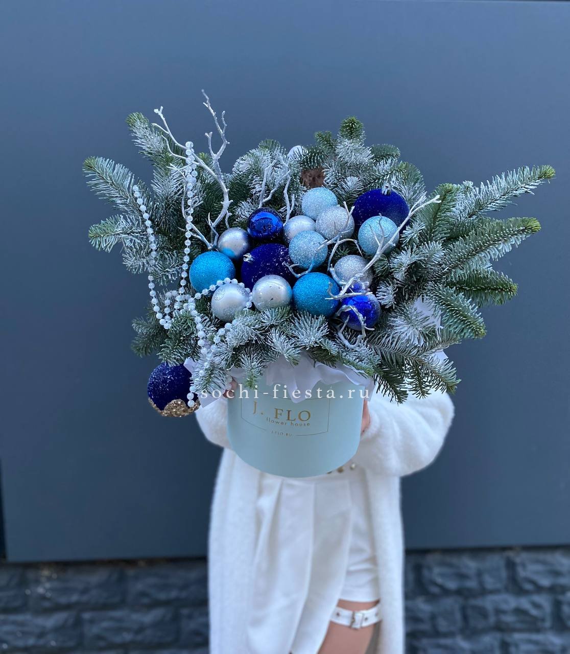 Состав: нобилис, цилиндр, оазис, новогодние игрушки, декор
