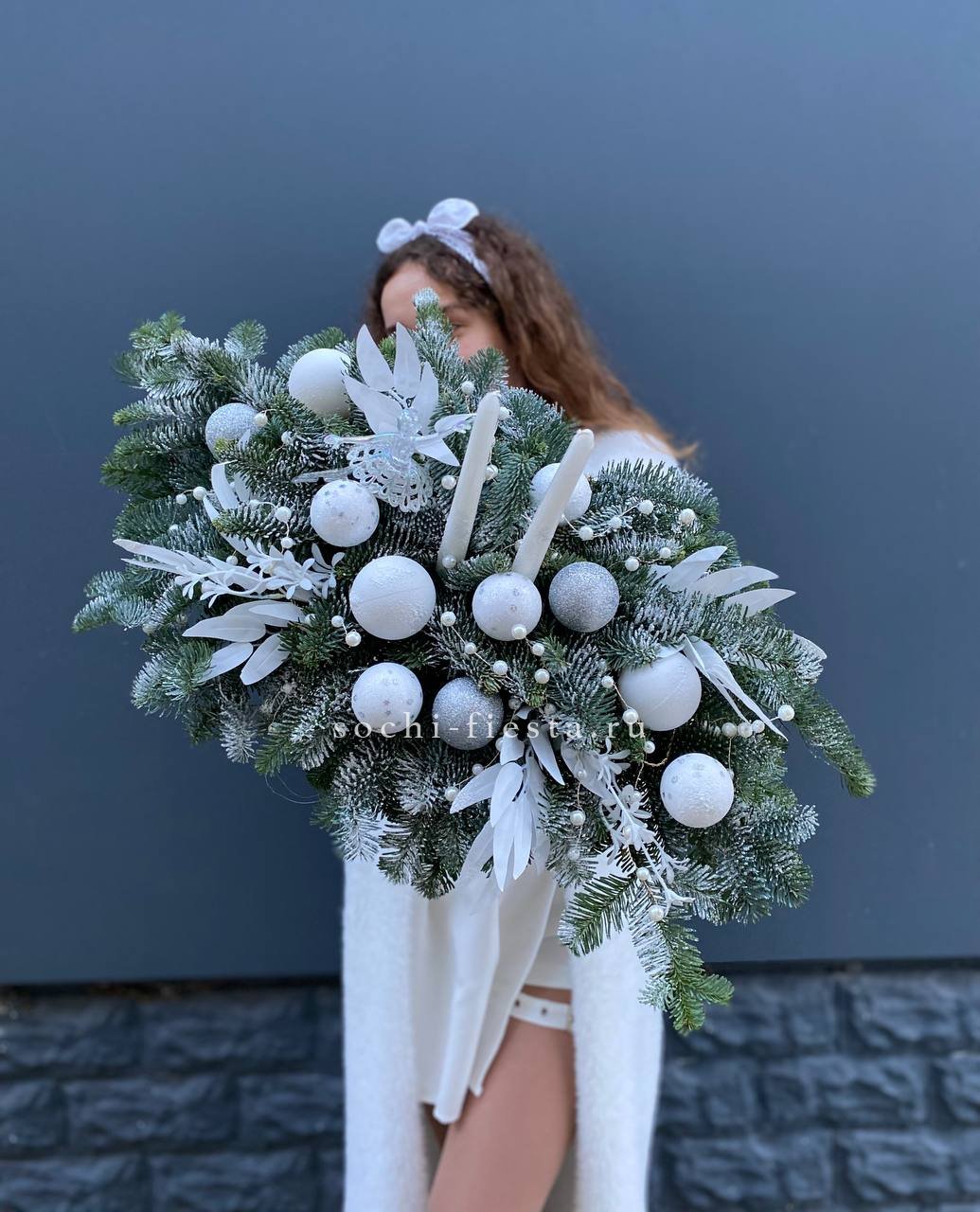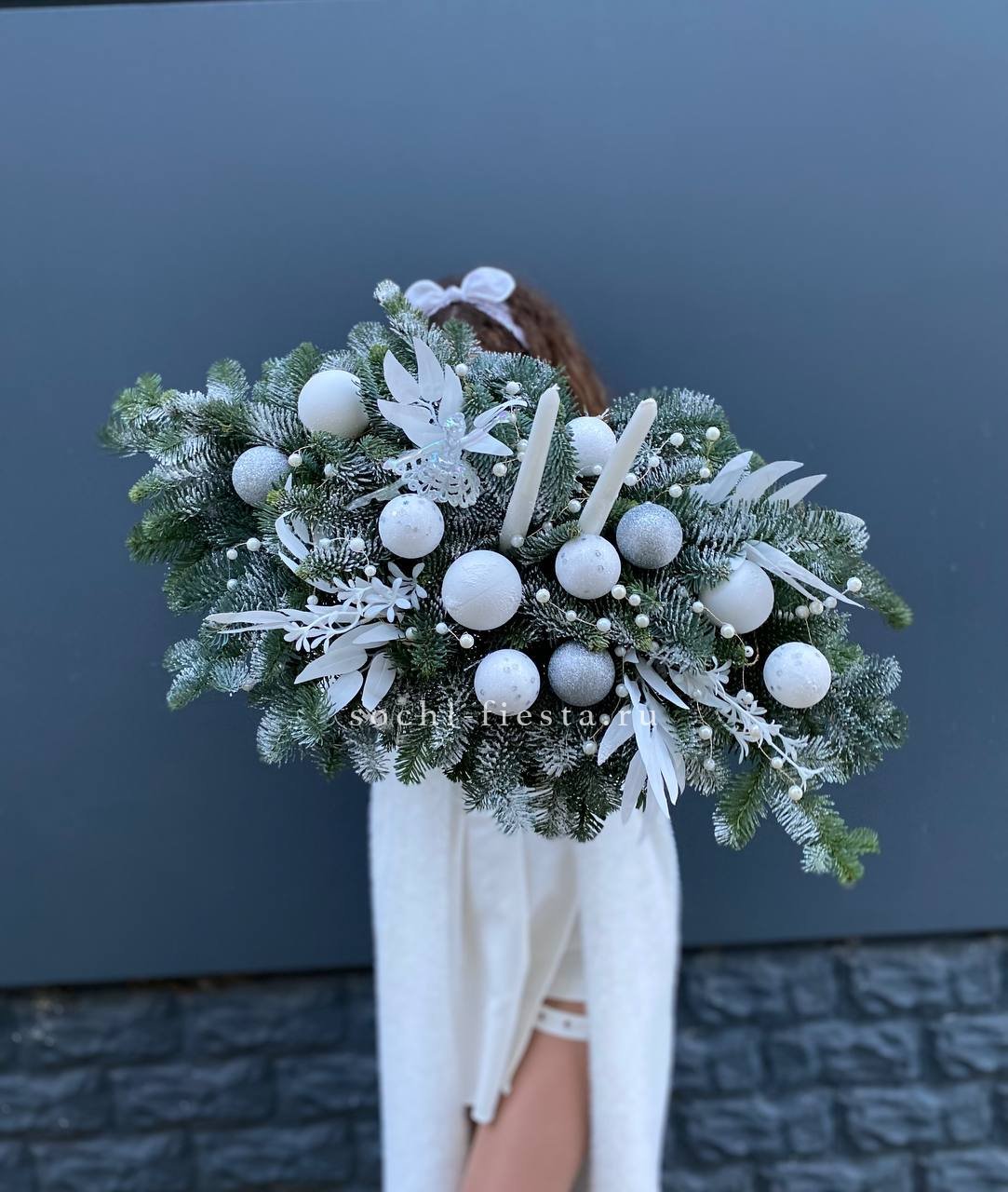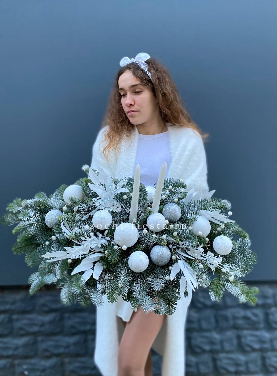 Состав: нобилис, балерина, оазис, свечи, новогодние игрушки, декор