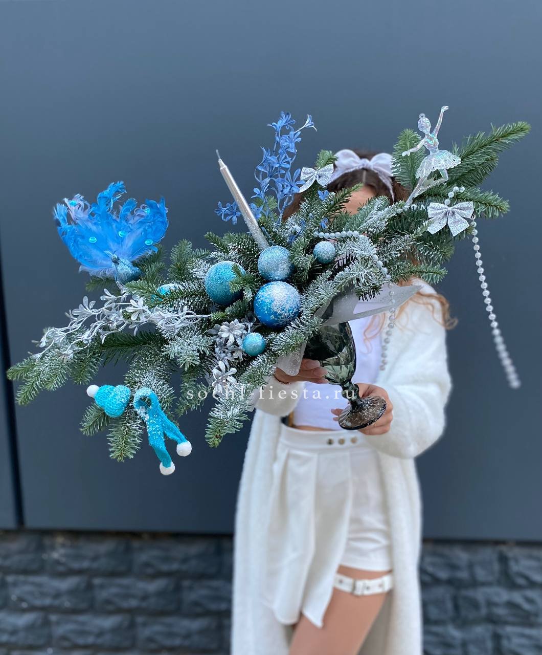 Состав: нобилис, бокал, оазис, свеча, новогодние игрушки, декор