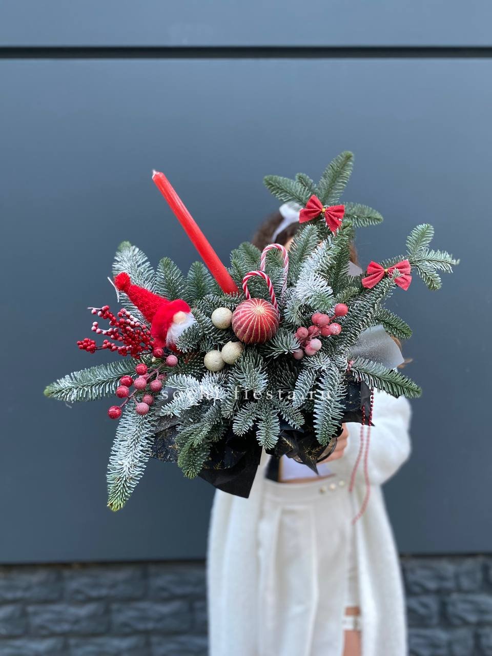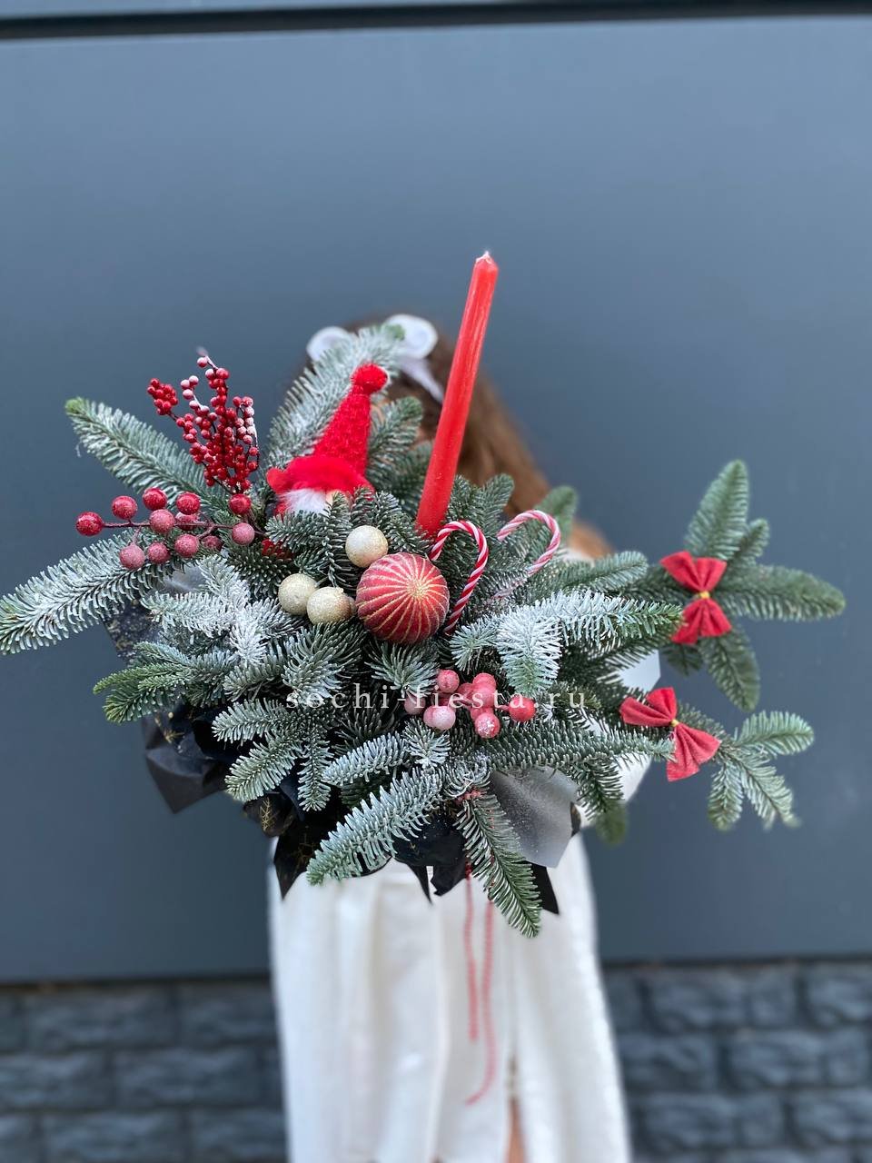Состав: нобилис, бокал, оазис, свечи, новогодние игрушки, декор
