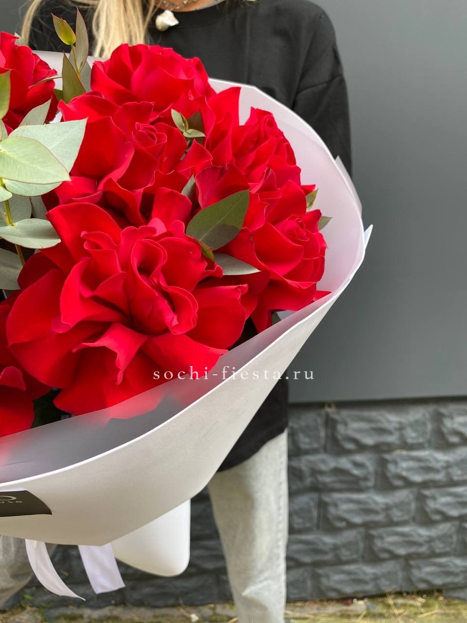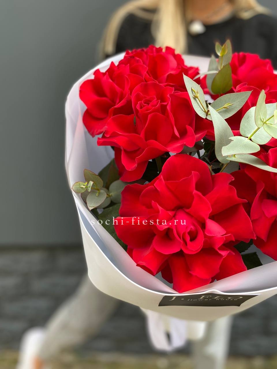 Состав букета на фотографии: вывернутые розы - 9 шт., эвкалипт-1шт, лента, авторская упаковка
